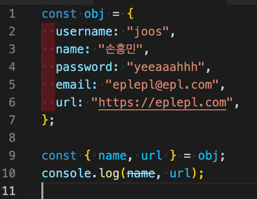 객체 안에 수많은 키밸류 쌍이 있더라도, 9번 줄처럼 우리가 원하는 변수만 저렇게 써주면 똭 할당됩니다...