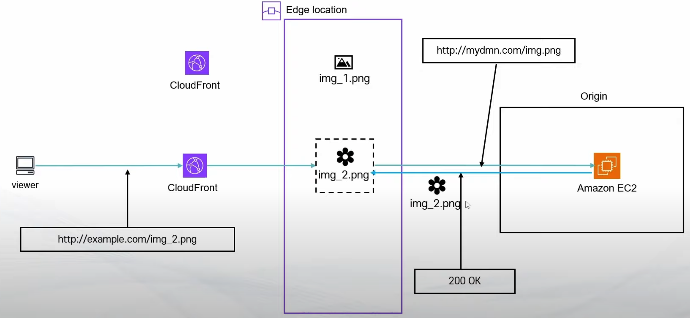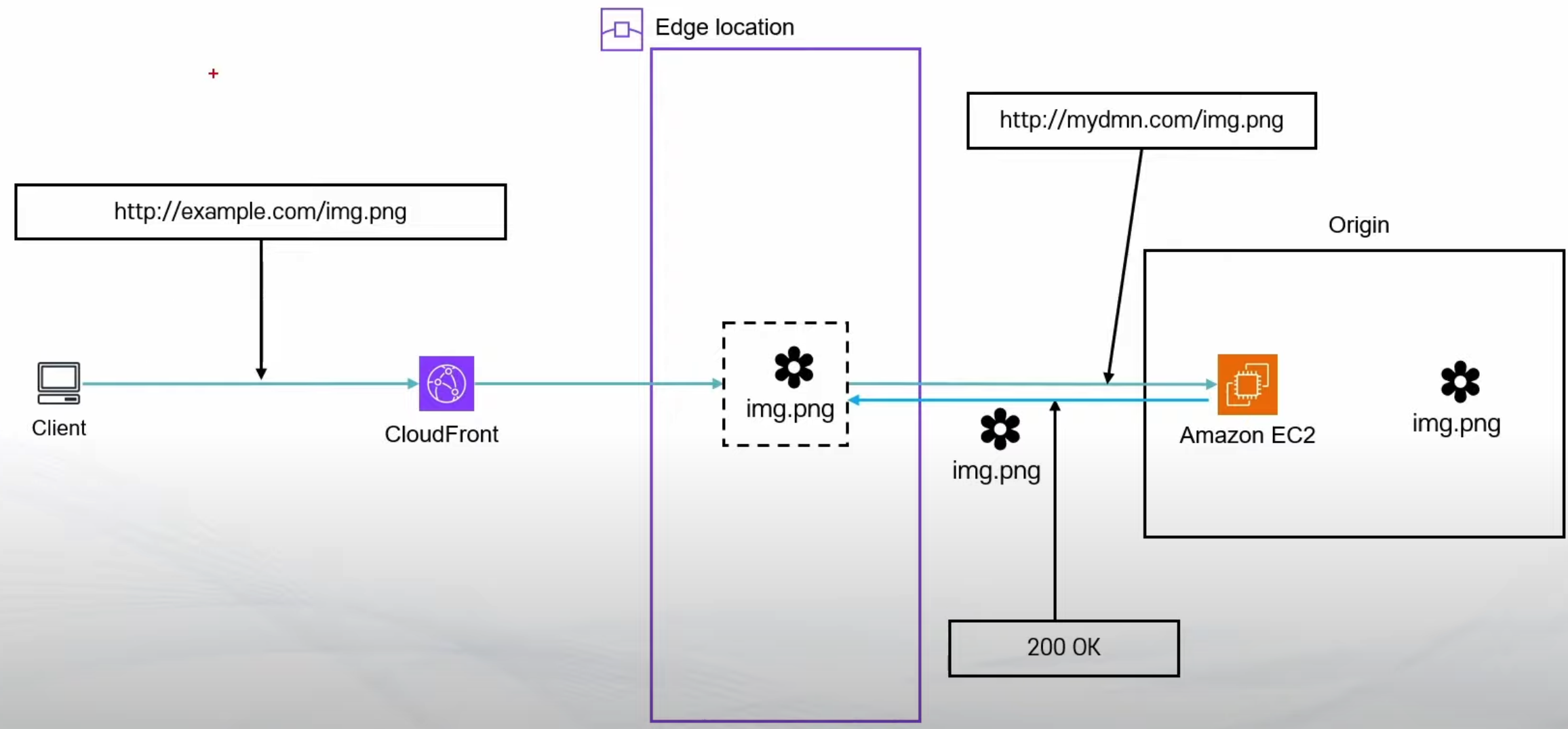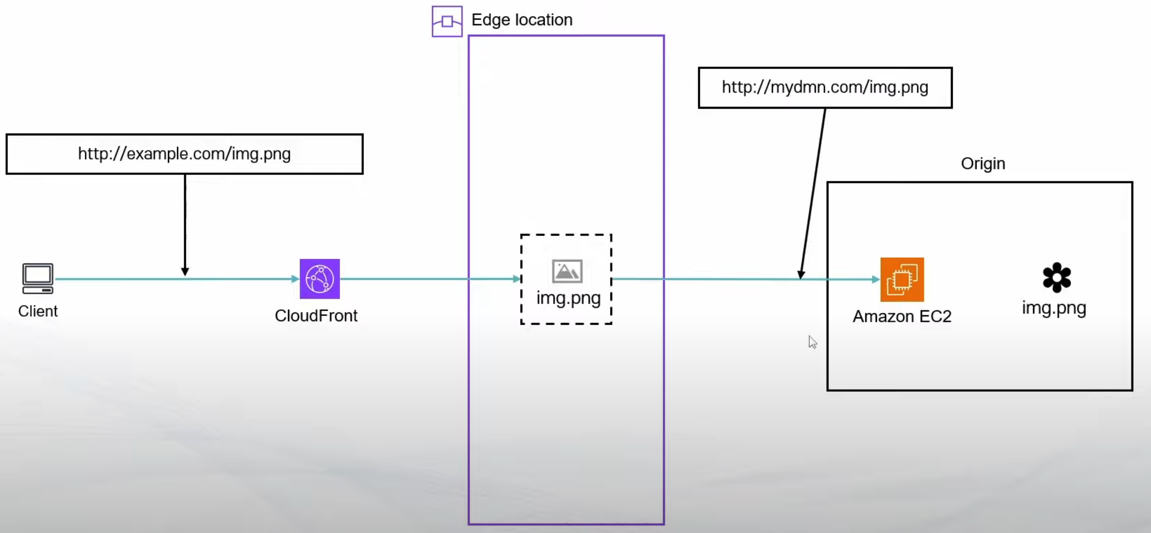 img.png 파일이 Edge Location 에 캐싱되어 있는 상황이다.